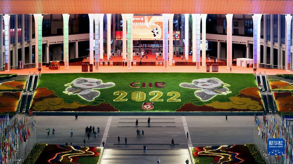 这是2022年11月5日拍摄的第五届中国国际进口博览会举办地国家会展中心(上海)夜景。新华社记者 刘颖 摄