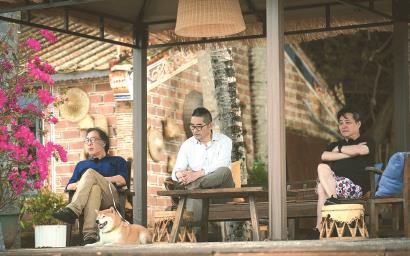 外景纪实类阅读节目《我在岛屿读书》开播,余华、苏童、西川(从右至左)等作家成为“书屋主理人”。 (节目组供图)