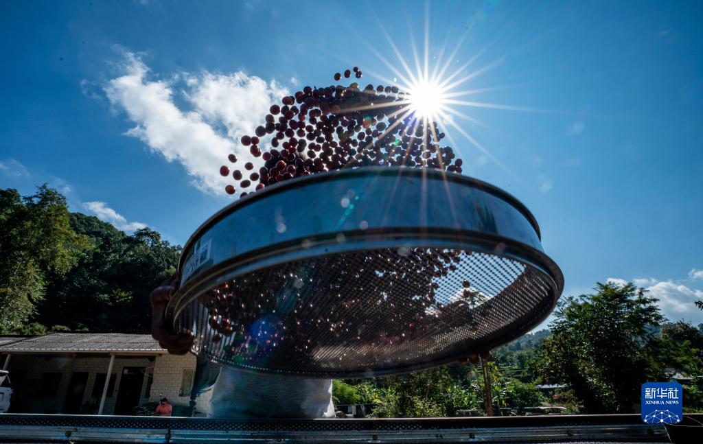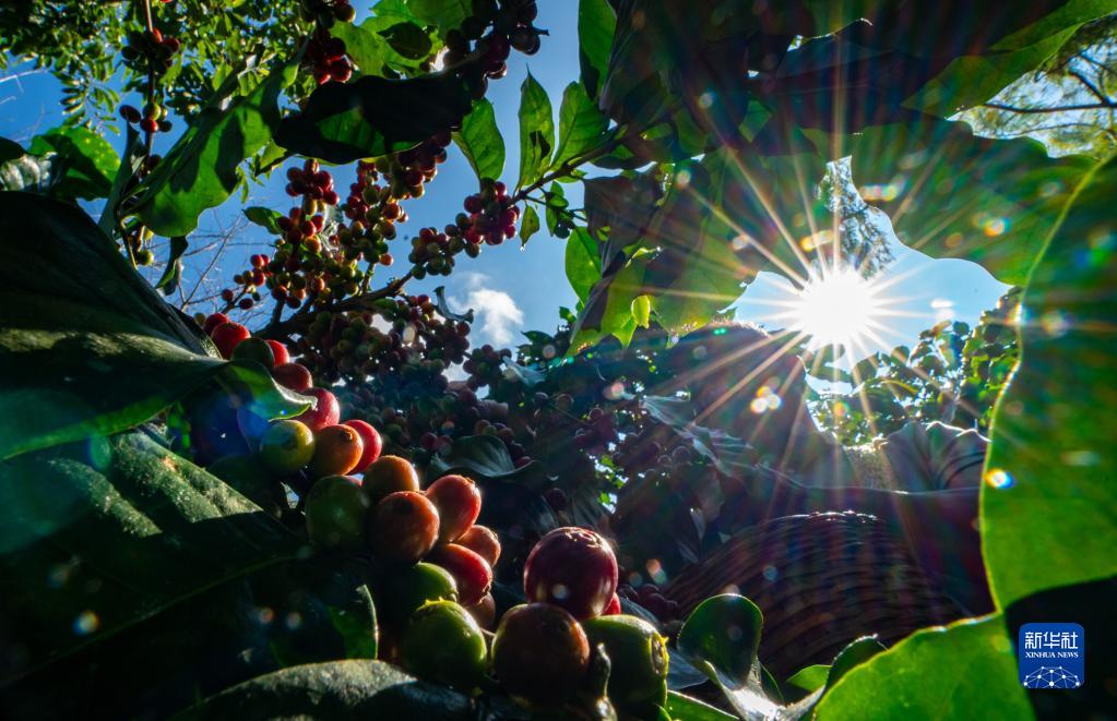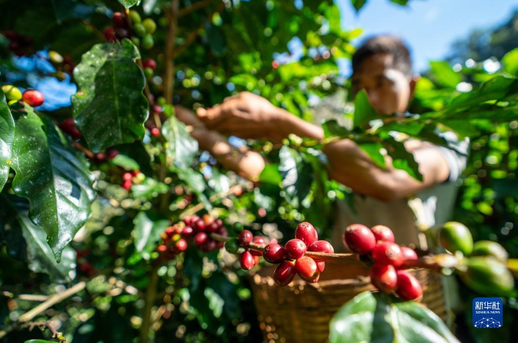 近日,云南省普洱市各咖啡产区迎来采收季。以茶马古道、普洱茶闻名的普洱市,近年来成为中国种植面积最大、产量最多的咖啡产区。2021年普洱咖啡种植面积达66.8万亩、产量4.6万吨。新华社记者 江文耀 摄