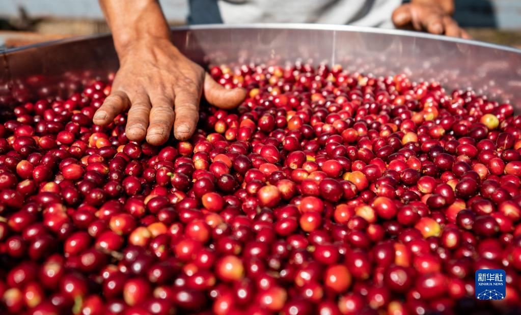 近日,云南省普洱市各咖啡产区迎来采收季。以茶马古道、普洱茶闻名的普洱市,近年来成为中国种植面积最大、产量最多的咖啡产区。2021年普洱咖啡种植面积达66.8万亩、产量4.6万吨。(新华社记者 江文耀 摄)
