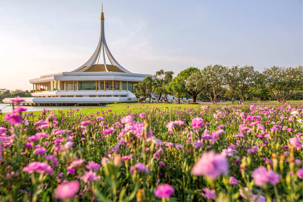 ↑这是2022年3月15日在泰国曼谷拍摄的九世王御园。