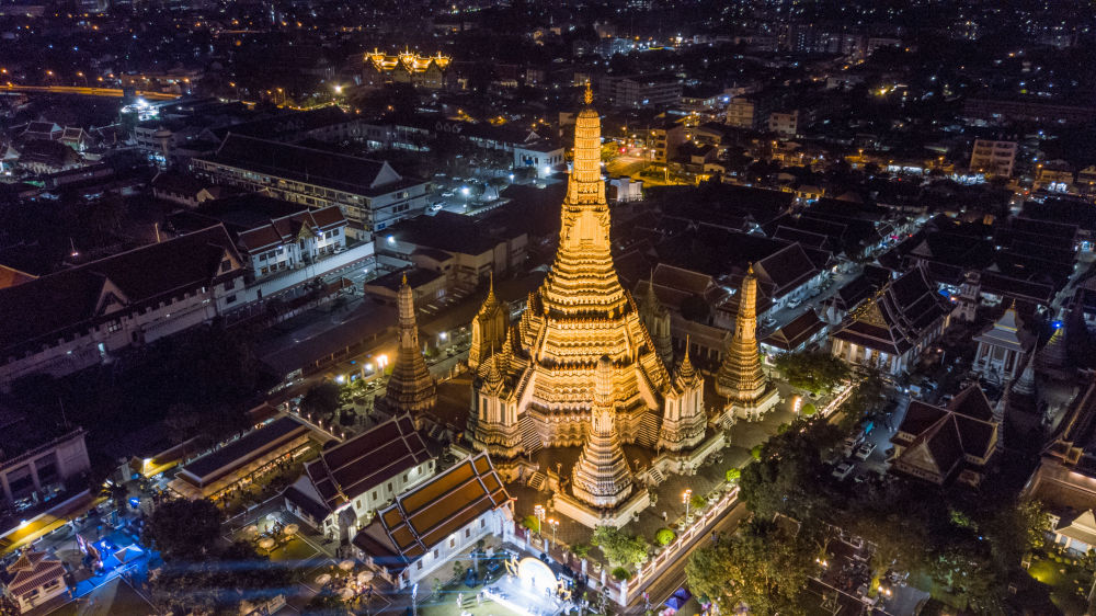 ↑这是2022年11月7日在泰国曼谷拍摄的郑王庙(无人机照片)。