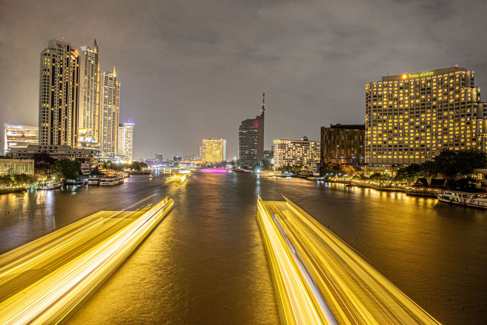 ↑这是2022年11月6日在泰国曼谷拍摄的湄南河夜景。