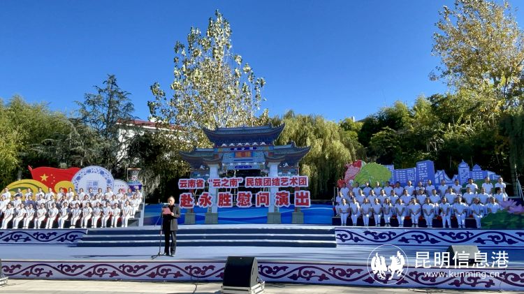 昆明信息港讯 记者张玉玲 伴随着清风、沐浴着冬韵,11月16日,“云之南”民族团结艺术团带着问候和祝愿来到了滇川交界的云南丽江永胜县。本次慰问演出以学习宣传贯彻党的二十大精神为主题,用歌舞、戏曲、小品等群众喜闻乐见的形式,讴歌党、讴歌祖国、讴歌人民、讴歌英雄,表达云南人民“心向北京、拥护核心”的质朴情感,展现“党的光辉照边疆,边疆人民心向党”的壮美画卷。