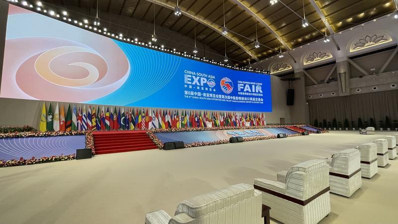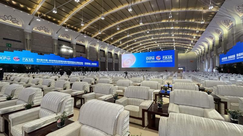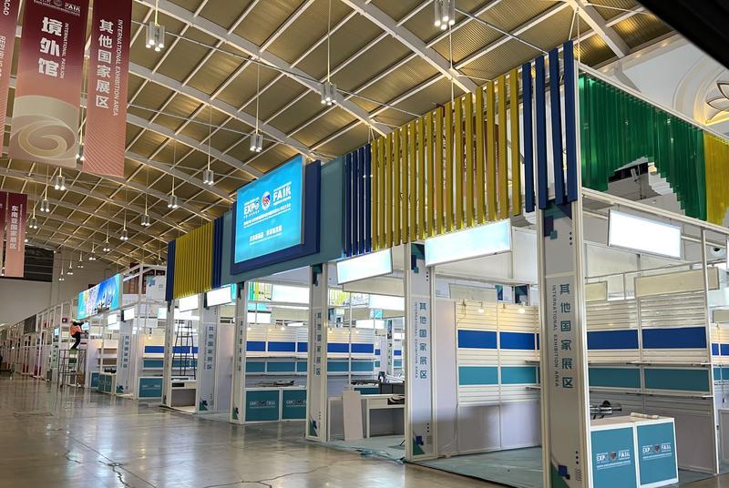 11月17日,南博会场馆正紧锣密鼓布展。云报客户端 记者顾彬摄