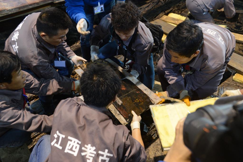 孔子屏风出土时的照片。江西省文物考古研究院供图