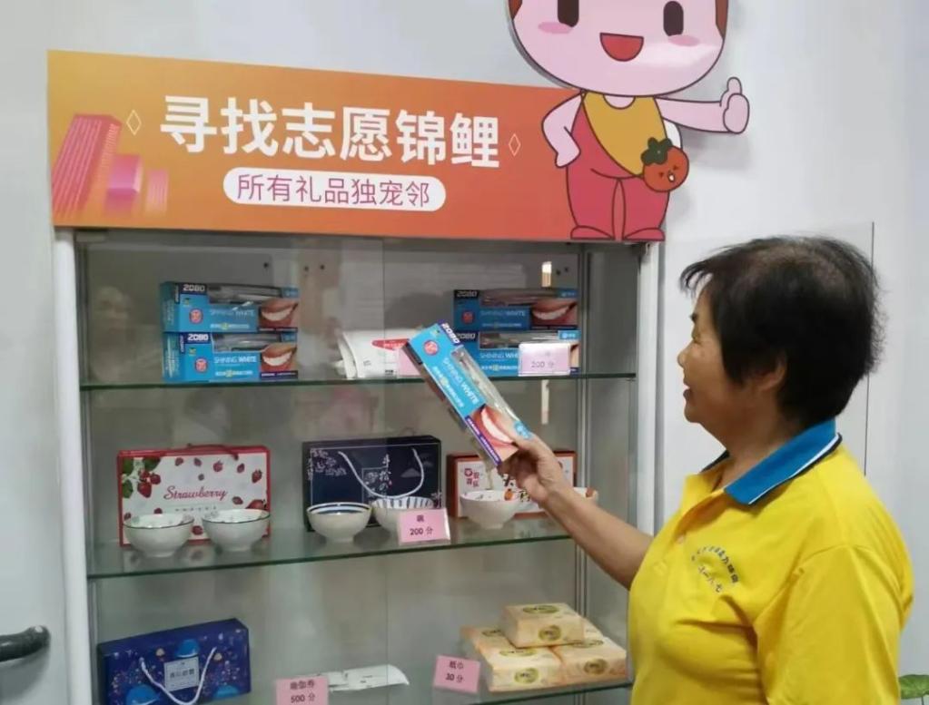 11月10日,社区居民在“全龄段公益时间银行”用自己的志愿服务积分兑换奖品。(受访社区供图)