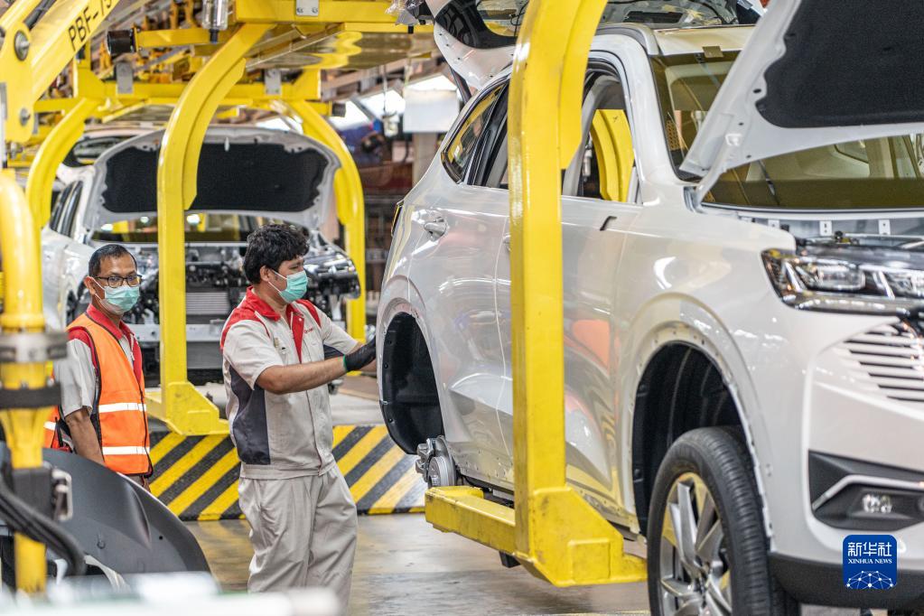 2022年11月8日,工人在泰国罗勇府长城汽车工厂工作。新华社记者 林昊 摄