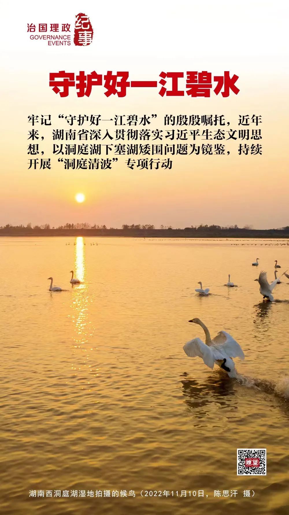 牢记“守护好一江碧水”的殷殷嘱托,近年来,湖南省深入贯彻落实习近平生态文明思想,以洞庭湖下塞湖矮围问题为镜鉴,持续开展“洞庭清波”专项行动。