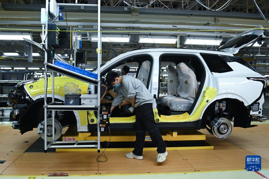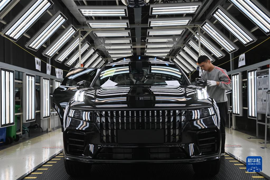 11月19日,工人在领克汽车宁波梅山工厂的总装车间对即将下线的领克09汽车进行检验。