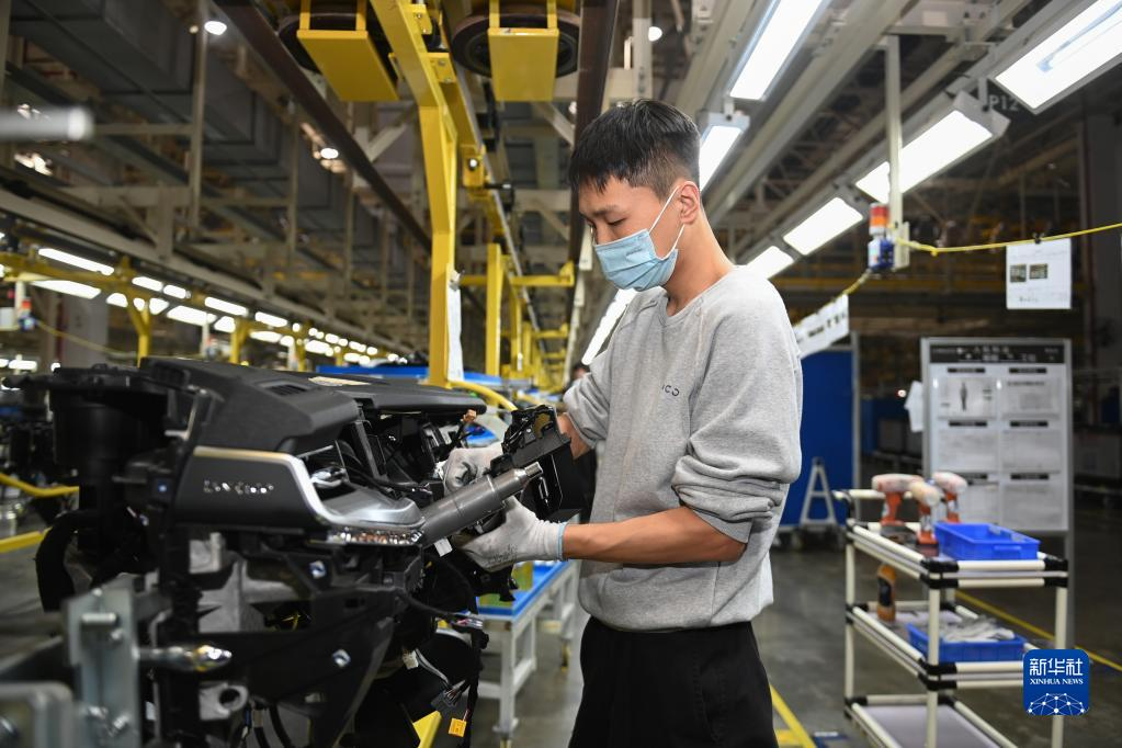 11月19日,工人在领克汽车宁波梅山工厂的总装车间作业。