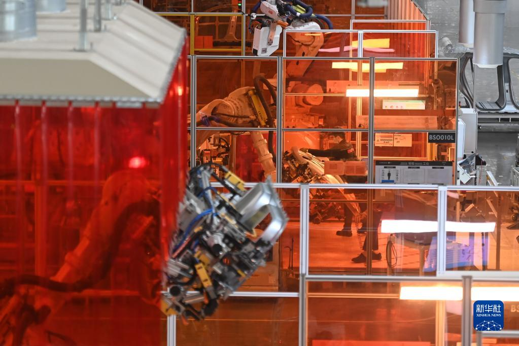 11月19日在领克汽车宁波梅山工厂拍摄的自动化焊接线。