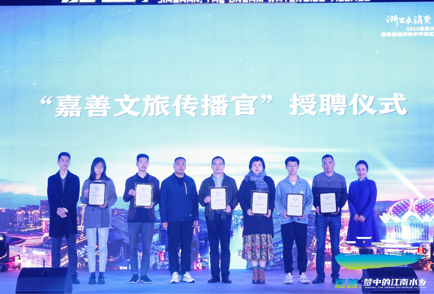 “百里郊原似掌平,竹枝唱出尽吴声。六乡游遍停舟晚,篝火渔灯相映明。”活动启动当天,活动主办方还通过视频、图文专题展示,丰富而又生动地向在场的与会嘉宾及市民游客介绍了嘉善的文旅资源。嘉善经济技术开发区(惠民街道)以全新的视角展示了国家级经济开发区的风貌。惠民街道这一季果园、五彩姚庄、大云旅游度假区、西塘古镇景区等嘉善当地景区纷纷上台进行推介。6位媒体及旅行社代表受聘成为“嘉善文旅传播官”。