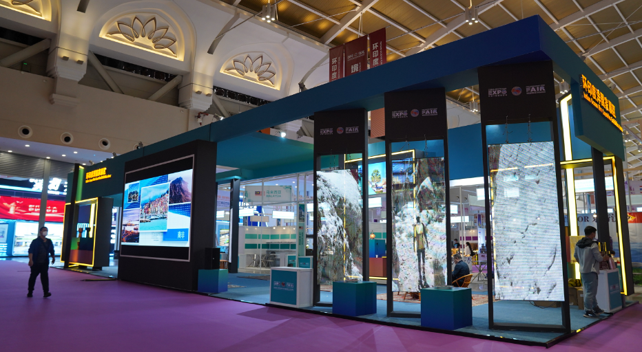除了浓郁的文化氛围,今年的孟加拉国主题国馆里,数字化也是一个亮点。参与本次主题国馆建设的云南微动技术服务有限公司负责人李光军介绍:“我们这次在展馆内运用了两个动态LED屏幕,其中一个屏幕重在展示孟加拉国的标志性建筑,观众可以通过手触及屏幕中的局部图像,得到建筑的全景呈现;另一块由蓝红双色拼接的屏幕也给观众带来了人屏互动的体验,人流位置或肢体动作的变化都能在屏幕上得到体现,营造了一种流动感,在增强交互性的同时也让展馆的墙面更加生动。”