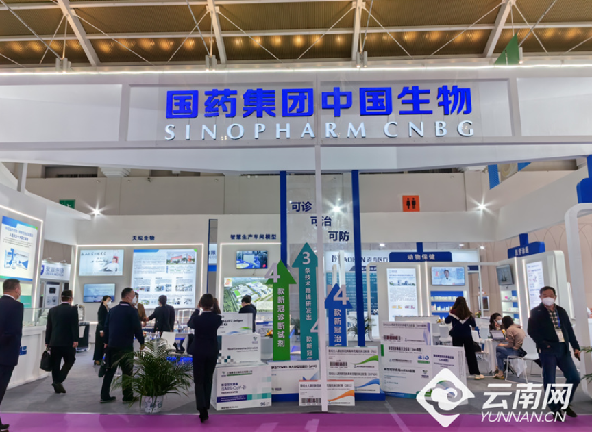 展馆内,中国生物技术股份有限公司此次携4款新冠疫苗、4款新冠诊断试剂、4款新冠治疗药物亮相展会。作为全球唯一一家独立自主在3条技术路线上独立研发出4款疫苗的企业,产品一经展出,吸引了大批行业从业者来此观展学习,开展交流合作。中国电信股份有限公司带着“5G+数字医疗”加入展会,为云南打造智慧医疗新模式提供新思路。被誉为“中华瑰宝”的中华老字号品牌云南白药集团股份有限公司携道地药材、功能食品、精油系列等多款特色产品参展,搭建起丰富的交流合作平台。