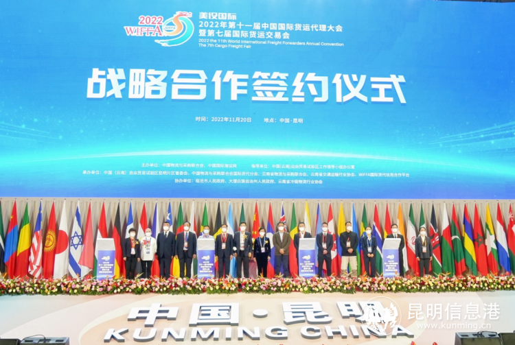 昆明信息港讯 记者王奕然 由中国物流与采购联合会和中国国际海运网主办的“2022年第十一届中国国际货运代理大会暨第七届国际货运交易会”,于11月20日在昆明滇池国际会展中心顺利开幕。本次大会以“中国物流,汇聚云南,联通世界”为主题,来自海内外园区、港航、物流的500余家企业,2000位嘉宾参展、参会,展场面积超过1.5万平,线上观会观展嘉宾达到3万人次。