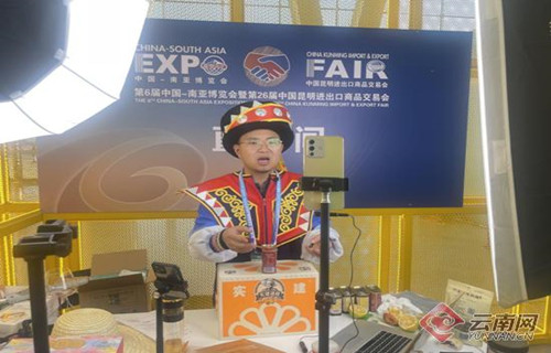 11月19日,第6届中国—南亚博览会暨第26届中国昆明进出口商品交易会当天,官方直播间“云品出滇”携手本土知名主播“曲靖老村长”亮相展会,主推云品。开幕式后仅两小时就实现销售额114万元。南博会期间,在云南省商务厅的指导和支持下,由云南省个体私营经济协会牵头组织,云南云品出滇科技有限公司组织了一批代表云南特色、具有地域文化并且有品质保障的云南老字号产品、优质农特产品及日化产品,在南博会场馆内搭建了直播间,身着靓丽民族服装的数名本地知名主播轮番“上阵”,热推优质云品。