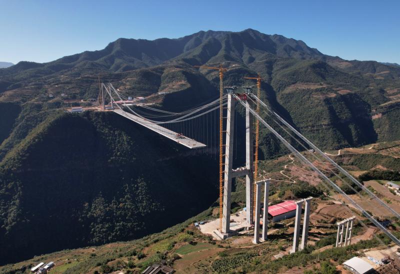 为了推进工程进度,施工人员克服了施工环境恶劣、高差大等困难,在新技术、新工艺的运用下,有序推进施工进度。据介绍,江底河特大桥主桥钢箱梁共77节段,目前已组拼完成62个节段、占比超过80%,钢箱梁架设完成54个节段、累计占比达70%,永仁岸引桥钢梁箱体已全部制造完成,两幅导梁第一轮顶推已完成。项目预计在今年12月15日前完成主桥钢箱梁合龙,在春节前实现全桥贯通。(楚雄日报全媒体记者 赵文丽 高建波 邱君竹 通讯员 管名媛 杨振丽)
