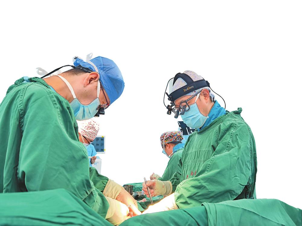 省阜外心血管病医院手术室的无影灯下,心脏外科三病区副主任医师郭秋哲作为冠状动脉旁路移植手术一助,熟练地完成每一个流程。走出手术室,郭秋哲和团队成员交流着术后注意事项。