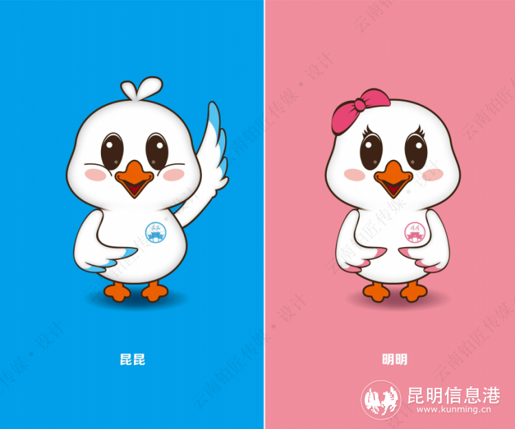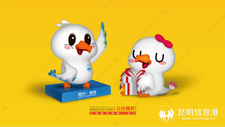此外,“昆昆”和“明明”两个形象的胸前,都分别佩戴含有昆明标志建筑物“金马坊”和“碧鸡坊”名牌徽章,充分彰显昆明特色。