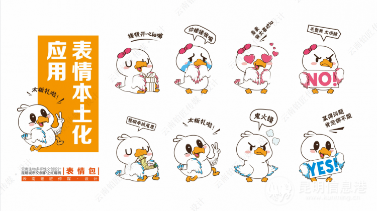 作品《昆明城市文创IP——红嘴鸥》在IP形象“昆昆”和“明明”的基础上,以昆明本地方言、昆明特色美食和保护红嘴鸥的小知识、科普等为元素创作了年轻人喜欢的系列表情包(表情包已在微信上线)、知识普及宣传展板,以及手提袋、水杯、手机壳、钥匙扣等系列文创产品设计图。李夏卓翌表示,公司在后续将以设计图为基础,生产一批文创产品,积极参与到昆明市2022年“了不起的创意家”文创合伙人招募计划活动线下展示中去。“红嘴鸥持续30多年到昆明过冬,已经足以证明昆明在生态环境保护方面的成效,而这么多年来,红嘴鸥也逐渐与昆明产生了不可分割的关系。”当听说活动将在东南亚国家开展线下宣传展示的时候,李旭峰相信“昆昆”和“明明”一定能在当地生动讲好昆明故事。