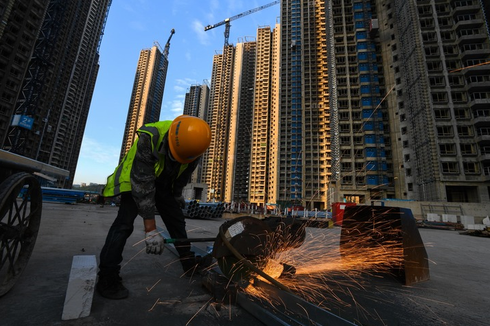 工人在深圳华富村回迁安置房建设现场施工(10月20日摄)。新华社记者 刘大伟 摄