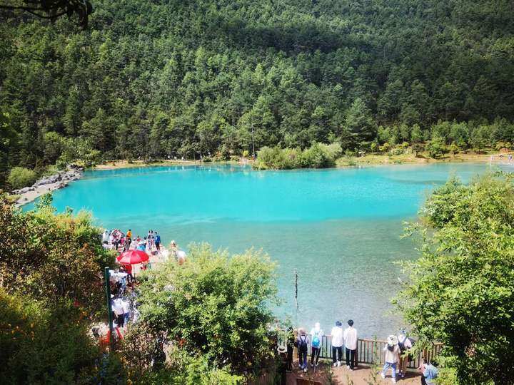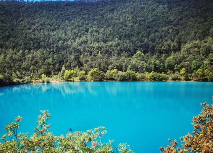 犹如一个蓝色月亮镶嵌在玉龙雪山下