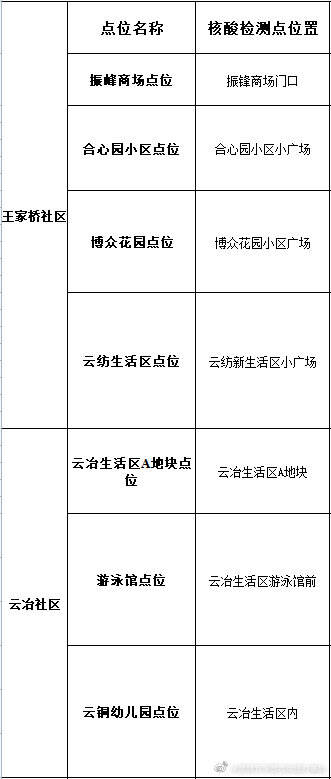 核酸检测点位如下