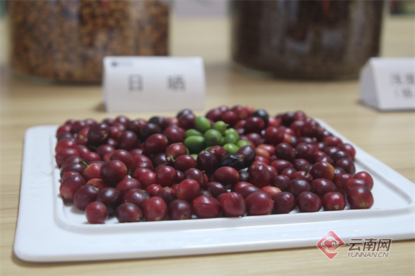 研讨会现场咖啡红果展示 赵芸瑞 摄