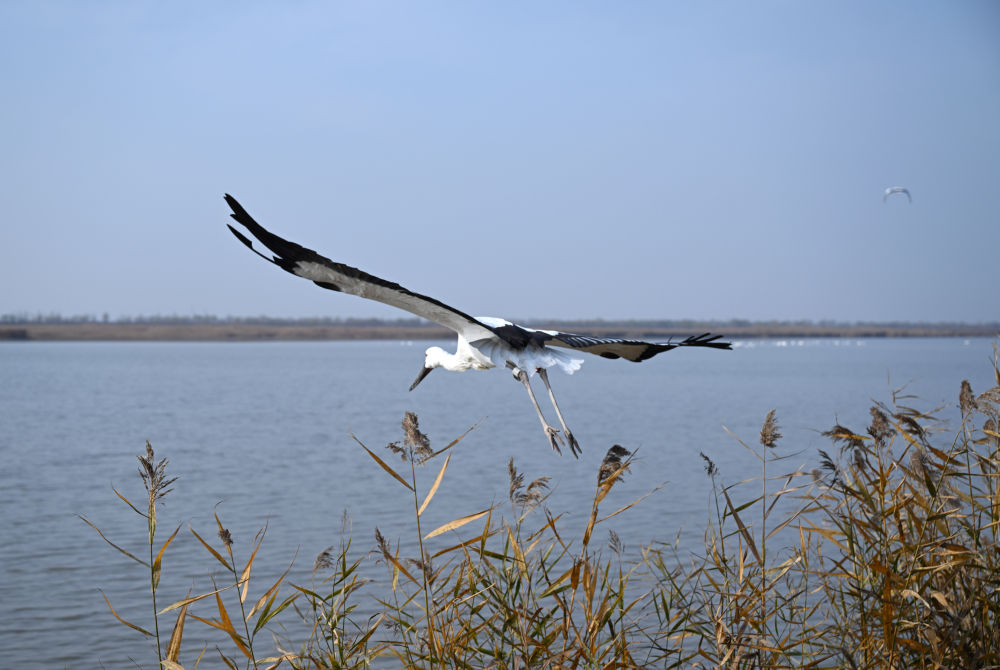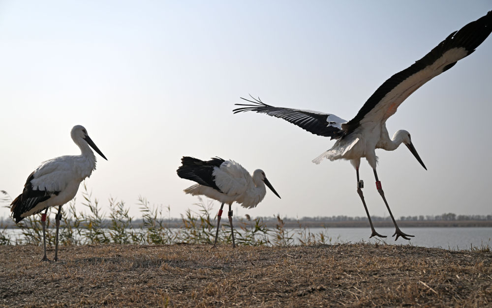 新华全媒+丨3只“鸟类大熊猫”东方白鹳在七里海湿地重返自然