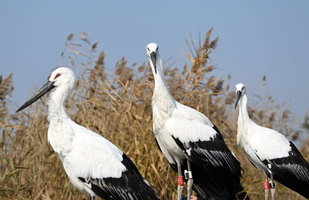 东方白鹳是国家一级保护动物。3只东方白鹳在回归自然的同时还佩戴了卫星跟踪器,工作人员将对它们进行持续监测,以便更好掌握其活动及健康情况。
