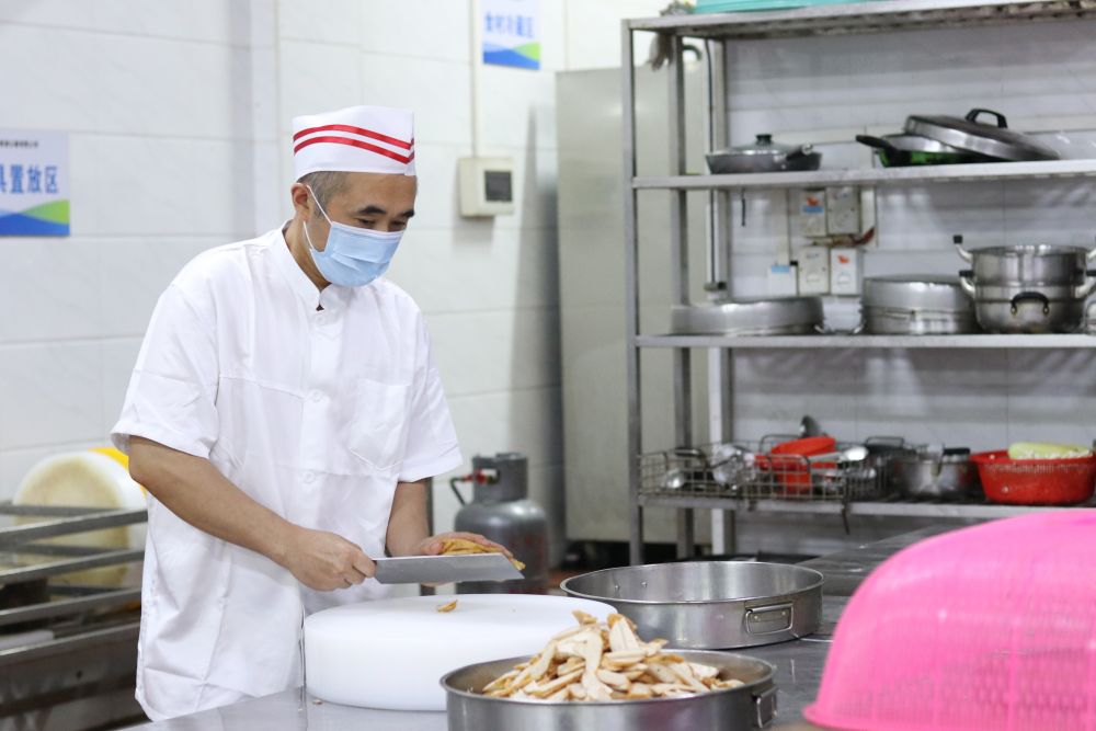 张容华在广深珠高速公路有限公司的食堂切菜。受访者供图