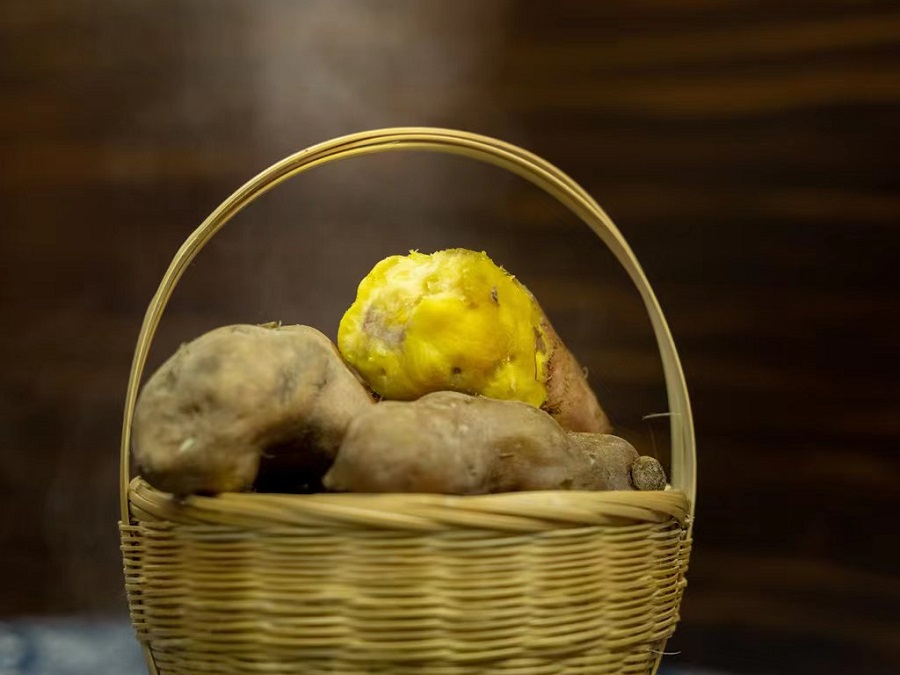 煮熟的疙瘩金红薯(10月13日)。东川区委宣传部 供图
