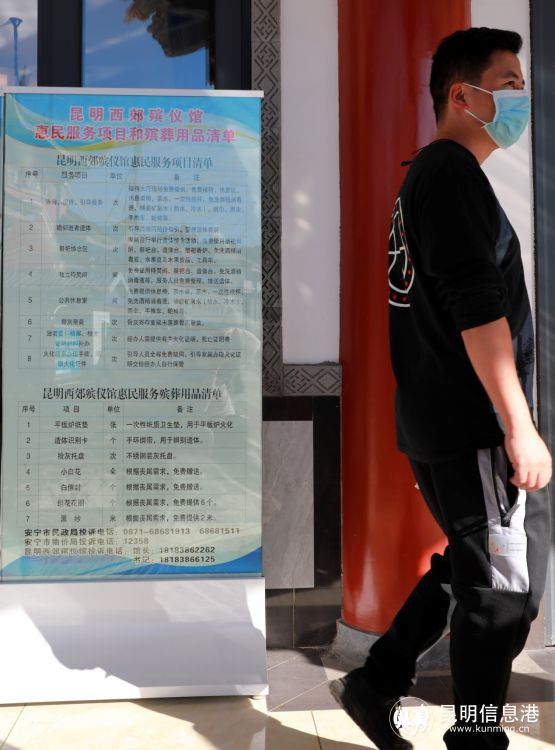 昆明西郊殡仪馆建立了基本殡仪服务项目收费清单、惠民服务项目清单、惠民服务殡葬用品清单、延伸服务项目收费清单等“四项服务清单”,在安宁市人民政府门户网站、殡仪馆人员聚集及显著位置共8个点位对殡葬政策、服务项目、收费标准、文件依据、减免政策、服务流程、监督举报电话等内容,进行了公开公示,维护广大群众的知情权。