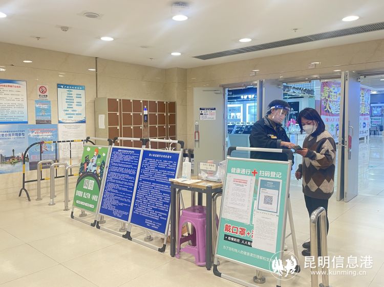 25日,记者在昆明南站进站口、出站口看到,身穿防护服的工作人员正有序为旅客测量体温、检查“健康码”和“行程码,查验核酸检测证明,同时保洁人员按照要求对站内公共区域开展常态化消杀,各项疫情防控工作有条不紊地进行。