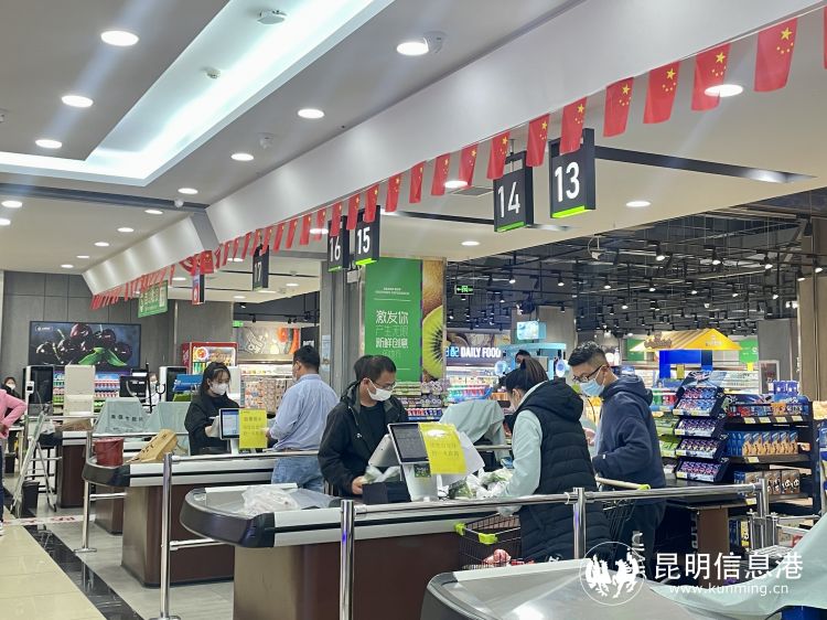 当前疫情防控形势严峻复杂,市民的“菜篮子”“米袋子”情况如何?11月25日,记者来到位于七彩云南第壹城的上海华联超市可以看到,商超工作人员严格落实人员防护、卫生消杀、入口查验等防疫举措。超市蔬菜、水果、肉类等生活必需品供应充足、品类丰富、摆放整齐,市民按需选购生活必需品,现场秩序井然。