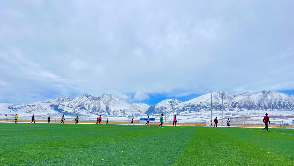 这是西藏那曲市嘉黎县中学的足球场(3月30日摄)。新华社记者 周荻潇 摄