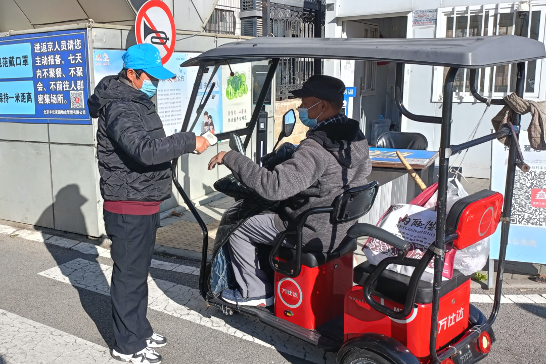 丰台区志愿者李亚杰主动投入社区一线,开展卡口值守志愿服务。不论刮风下雨,她和伙伴们都坚守在社区门口测体温、查验健康码。“当我们守护家园时,很多居民会说‘你们辛苦了,要注意保暖!’还有的居民把刚蒸出的包子拿出来给我们吃,听着他们说的热心话,感受着他们给予我们的温暖,我们的干劲更足了!”