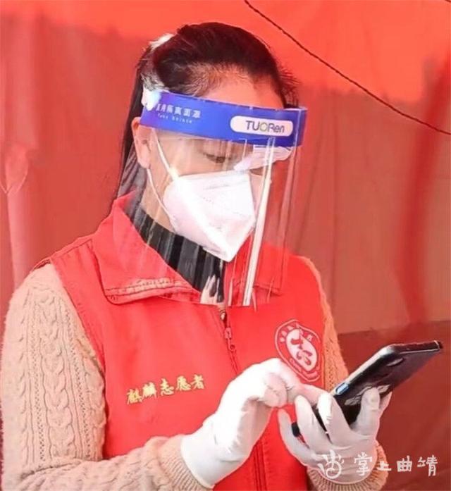 她是潇湘街道金麟湾社区金麟湾核酸检测采样点的志愿者,她不是曲靖人,她来自重庆。