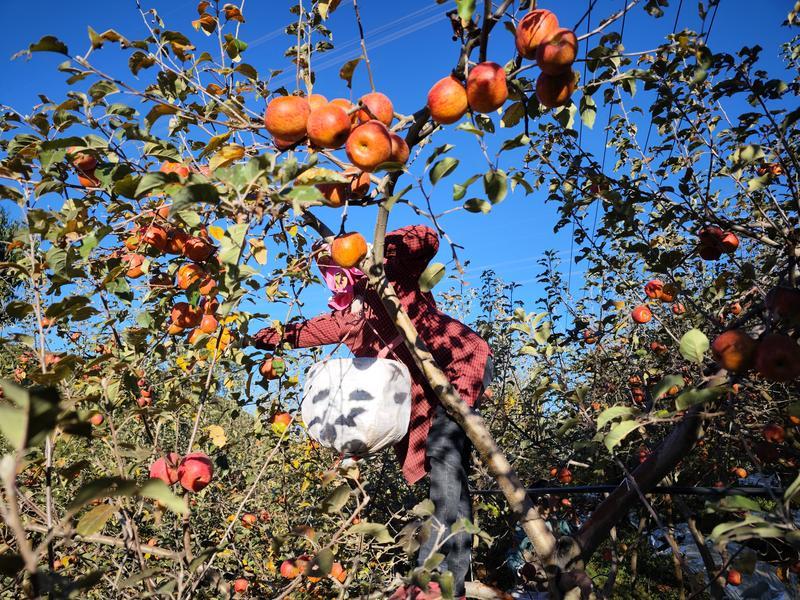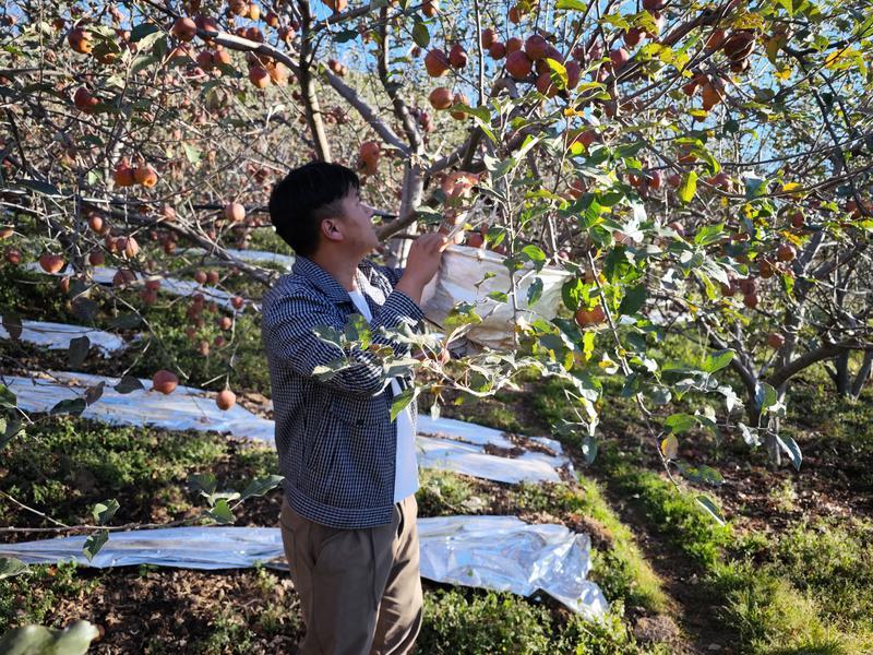 近日,大理白族自治州宾川县平川镇李子园村的苹果园迎来了丰收,漫山遍野的红苹果在阳光的映衬下格外喜人。果农们忙着采摘、分拣、装箱,呈现出一片忙碌的丰收景象,擘画出一幅乡村振兴蓝图。