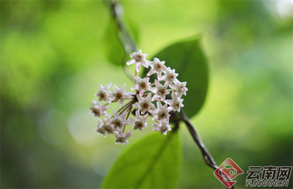 据有关资料显示,球兰属植物主要有攀援型和悬垂型两种类型,因其伞状花序常为球状,花幽香如兰,故名为球兰。凸脉球兰属于附生植物,粉色花冠呈五角星状展开,副花冠裂片的外角尖锐,花色晶莹剔透十分漂亮,具有较高的观赏价值。凸脉球兰属中国特有物种,在云南主要分布于普洱、西双版纳、临沧等地区。“这次凸脉球兰在龙陵的新发现,既为龙陵县球兰属植物家族再添‘新丁’,又为凸脉球兰在‘中国植物分布图’上增加了一个新的分布点。”谭运洪说。