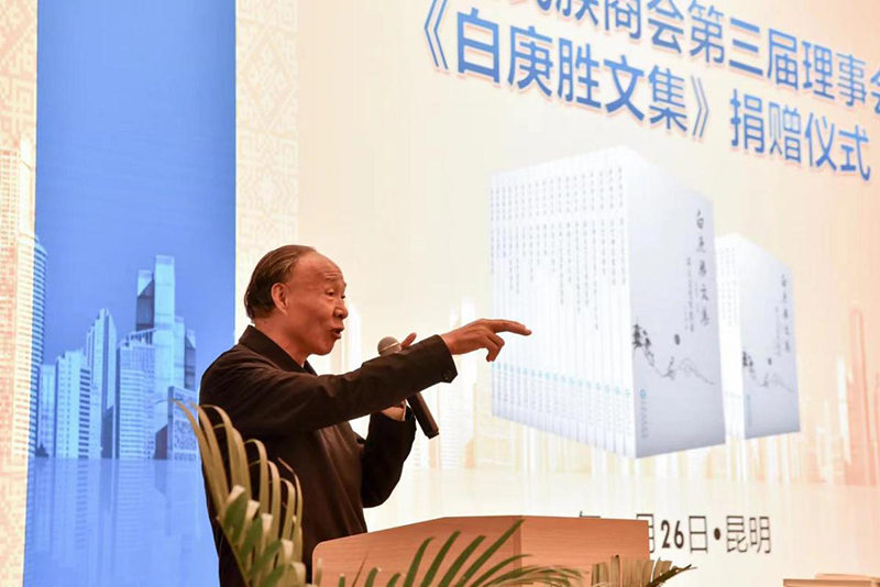 据了解,《白庚胜文集》共50卷约1500万字,是贵州民族出版社“名家大家作品出版工程”的首推项目之一,丛书收录了白庚胜数十年间从事民间文学、民俗学、民族学研究,以及文化遗产抢救保护整理工作和文学创作、文化交流与传播的丰厚成果。云南民族商会有感于白庚胜的文化贡献,决定购买200套《白庚胜文集》供云南省直及市县图书馆馆藏。