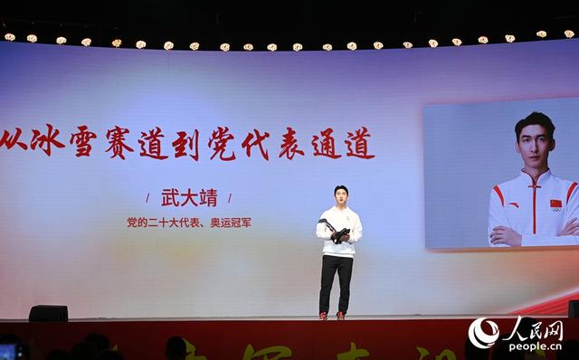 拿着一双“儿时梦想”的冰鞋,党的二十大代表、奥运冠军武大靖现场讲述了“刀尖上追梦”的故事。他说,伤痕累累的脚是他一路走来的见证者。他鼓励现场的青少年学生有梦想就去追:“我们生在一个伟大追梦的时代。”