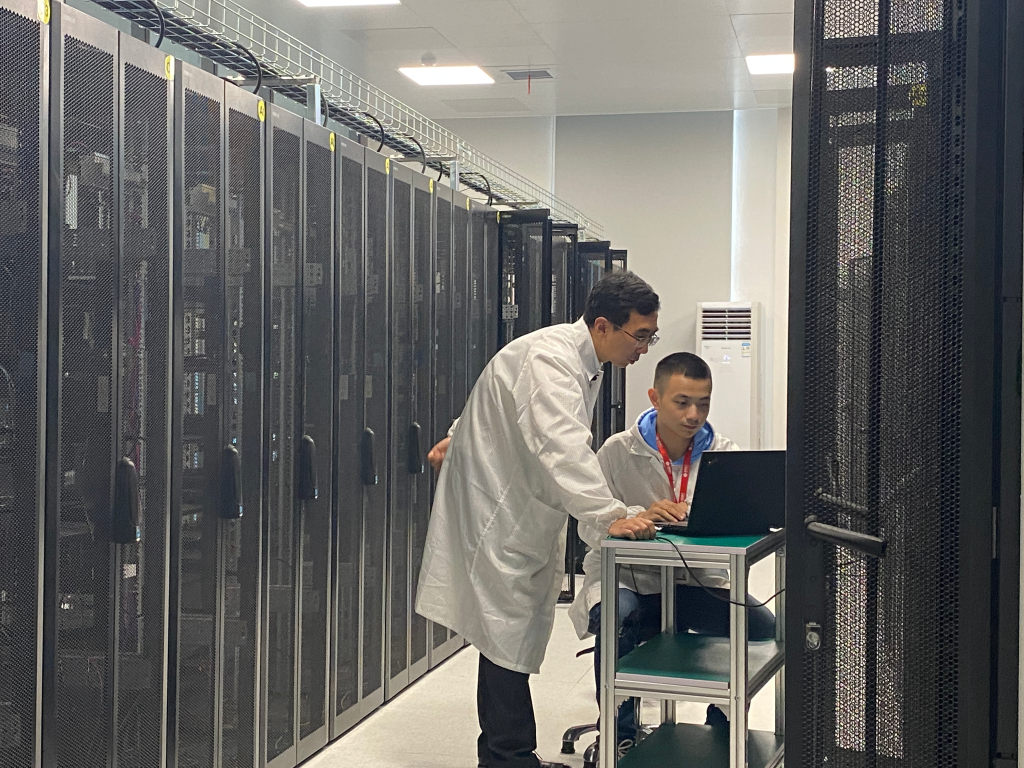 周雷和同事在对设备进行测试。(杨雅淑 摄)