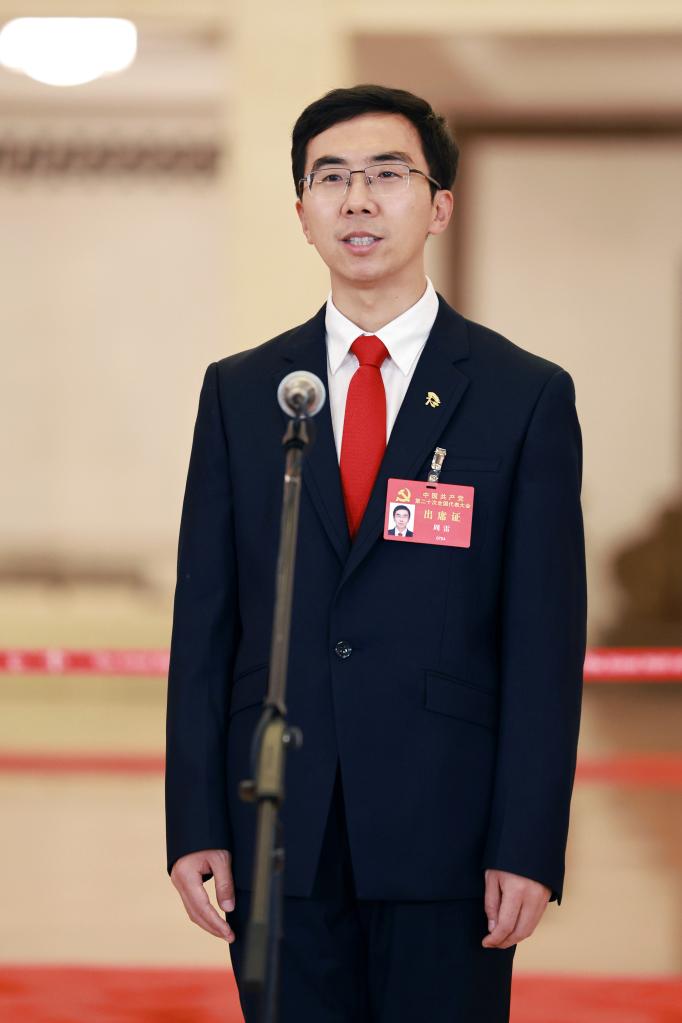 党的二十大闭幕会后,周雷代表接受采访。(新华社记者邢广利 摄)