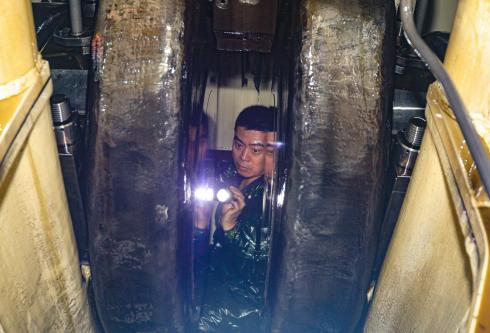 水线以下,目之所及满是各式设备和管线。轮机技师刘天水眼中却似乎闪过一道光——那是万里之外火箭划破天空的轨迹。