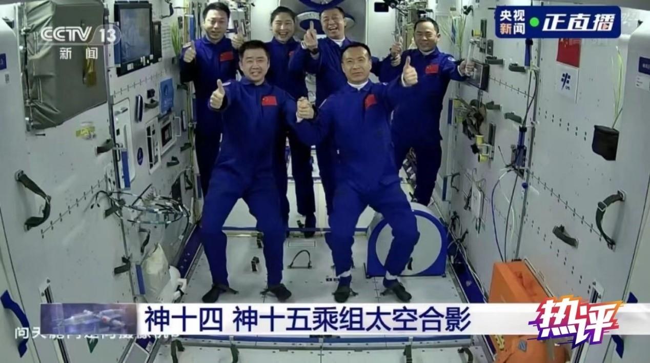 北京时间2022年11月29日23时08分,长征二号F遥十五运载火箭经受住低温严酷环境考验,准时点火发射,成功将神舟十五号载人飞船送入预定轨道,太空出差新三人组开启圆梦之旅。8个多小时后,空间站里翘盼已久的神舟十四号航天员乘组等来了新访客,一张大合影定格下6名中国人同时在太空的历史性时刻!
