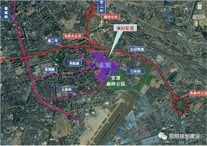 关坡片区城中村改造项目位于官渡区关上中心区,南邻日新路及官渡森林公园,西邻民航路,北临石虎关立交。