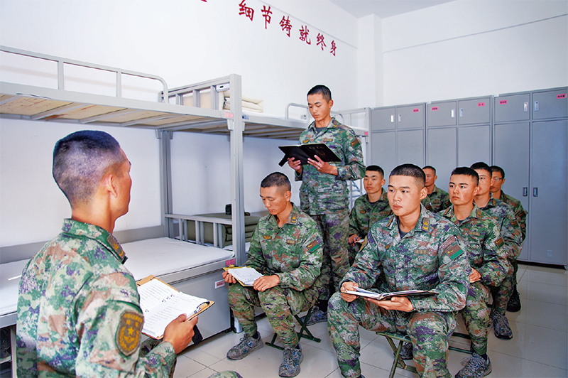 图为2022年11月1日,陆军第71集团军“济南第一团”的战士以党小组会形式认真学习党的二十大精神。 新华社发 李森/摄