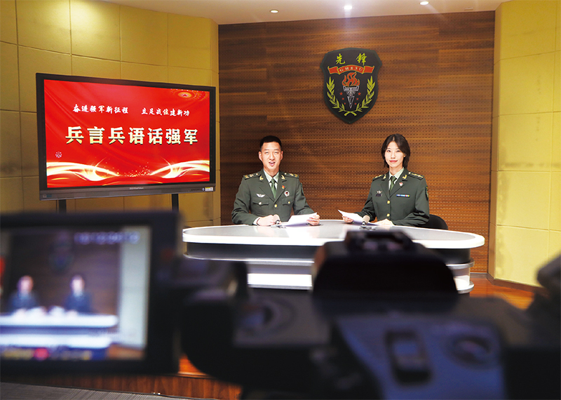 图为2022年10月30日,陆军第83集团军某旅组织基层理论骨干通过军营电视台宣传党的二十大精神。 新华社发 贾方文/摄